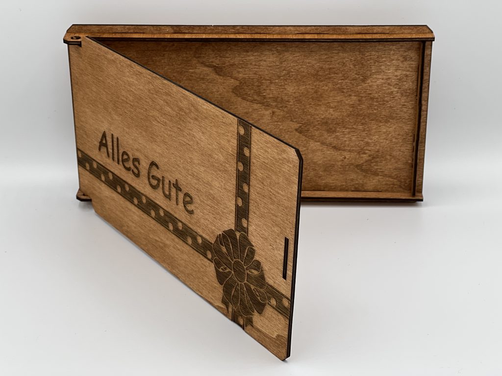 Die gezeigten Werke sind Beispiele aus vergangenen Projekten und zeigen, wie vielfältig individuelle Lasergravuren aus Holz sein können.